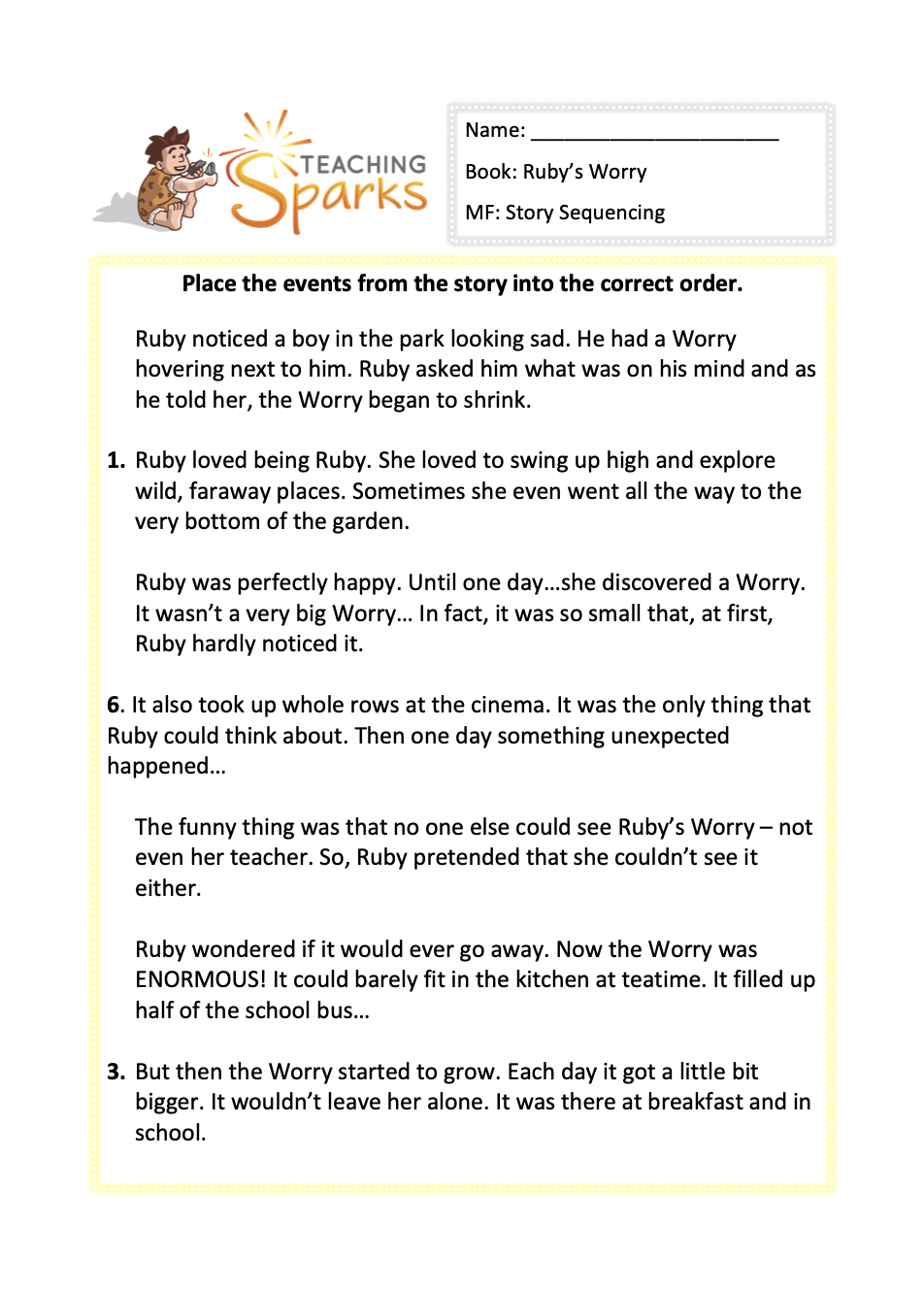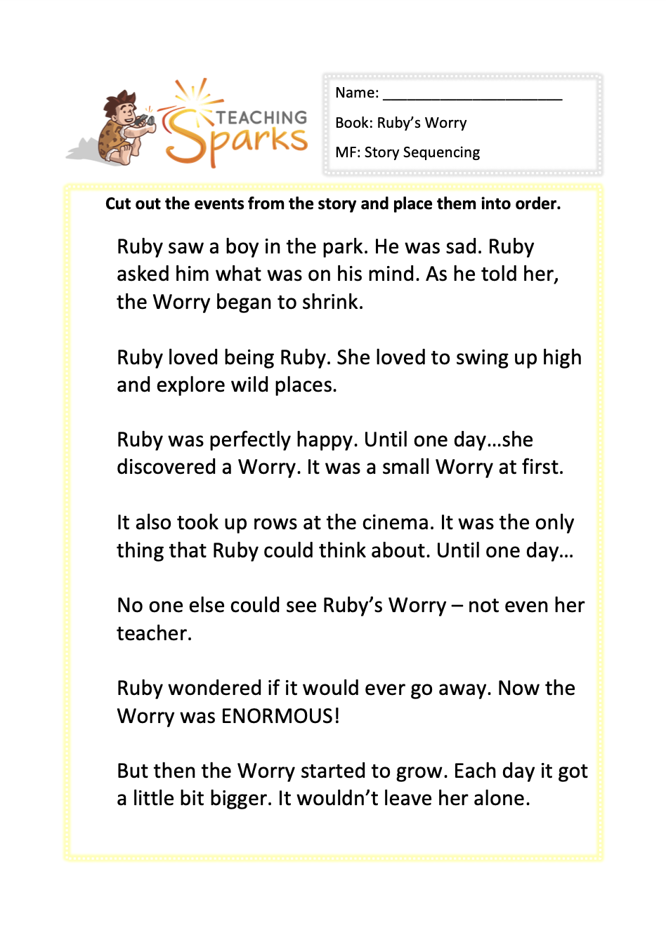 This is a story sequencing activity linked to Ruby’s Worry.