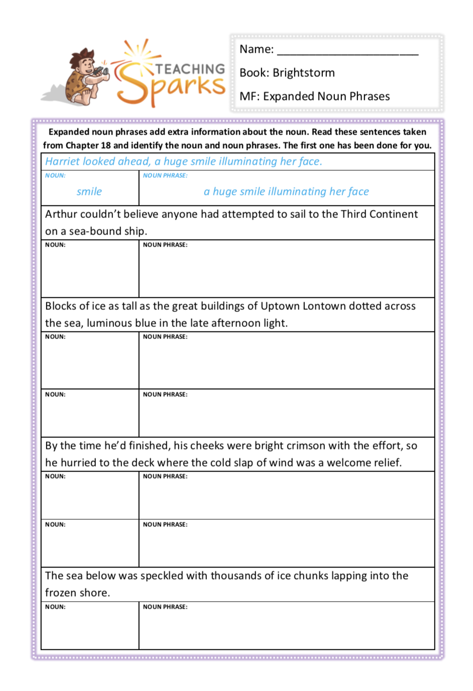 This pack is a great resource to help your class to identify expanded noun phrases used within Chapter 18 of the story. Your KS2 children will need to recognise the nouns and how the author has added a description to make the sentence an expanded noun phrase.