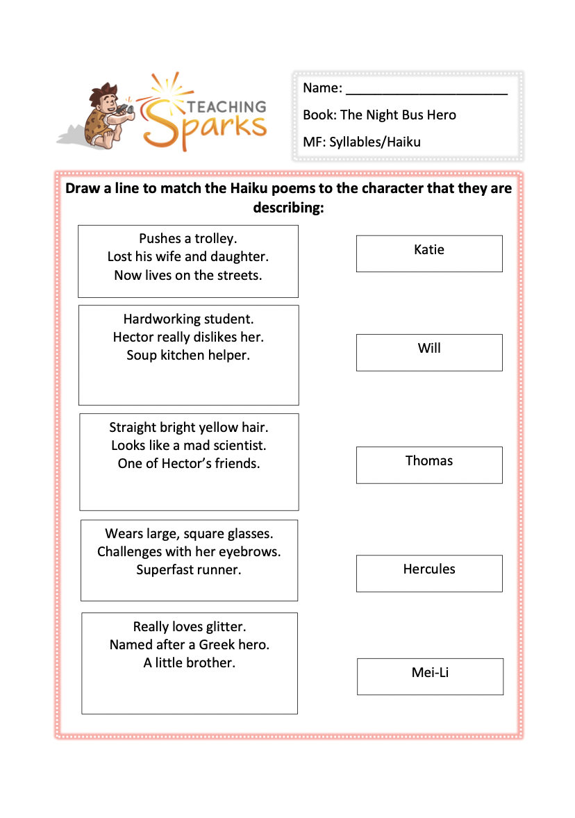 This comprehension is based on chapters 2 and 3 of ‘The Night Bus Hero’ and is aimed at Lower Key Stage 2, Year 3 and Year 4 classes.
