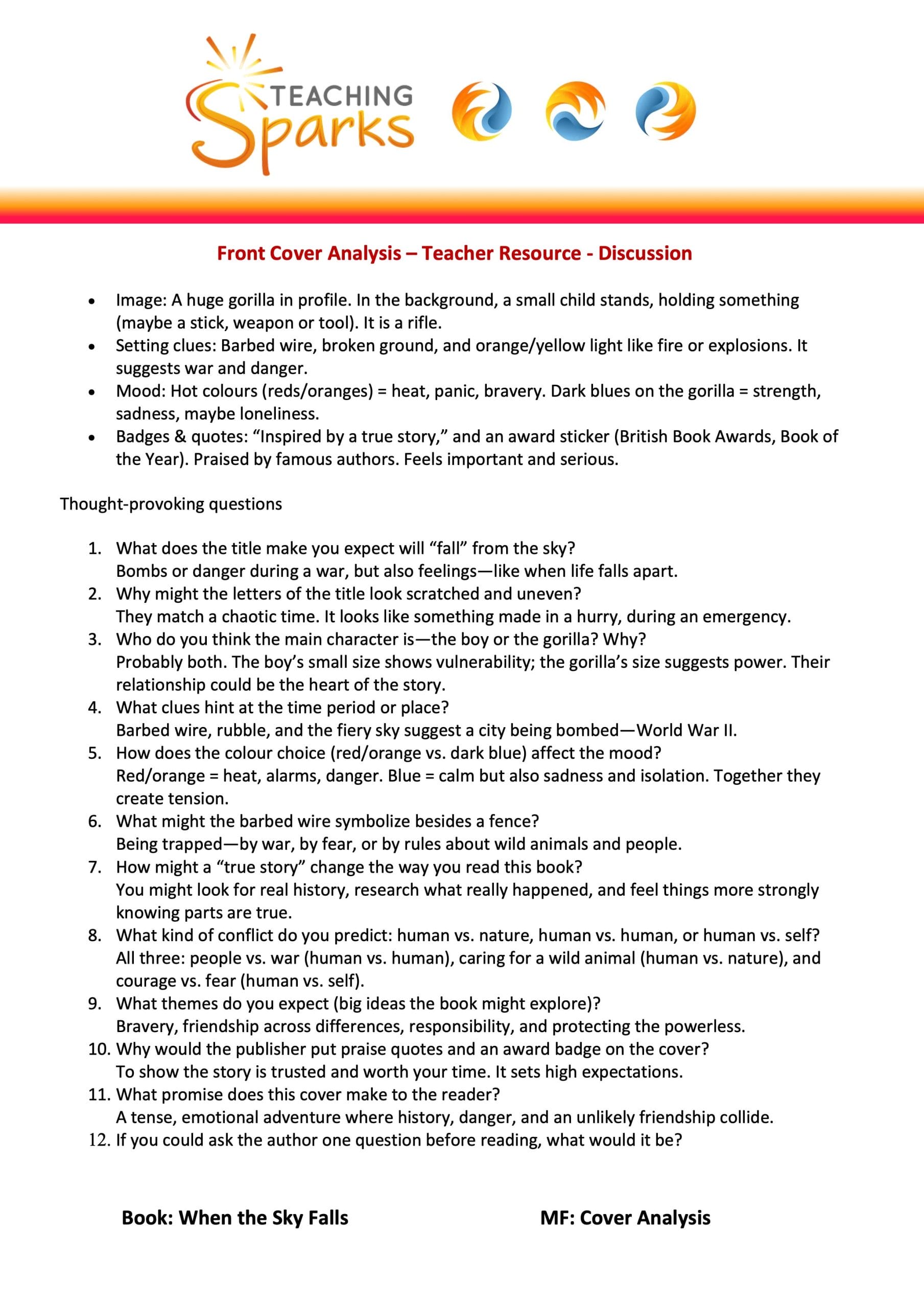 This is an introductory resource for the teacher to promote some discussions around the front cover of the book.