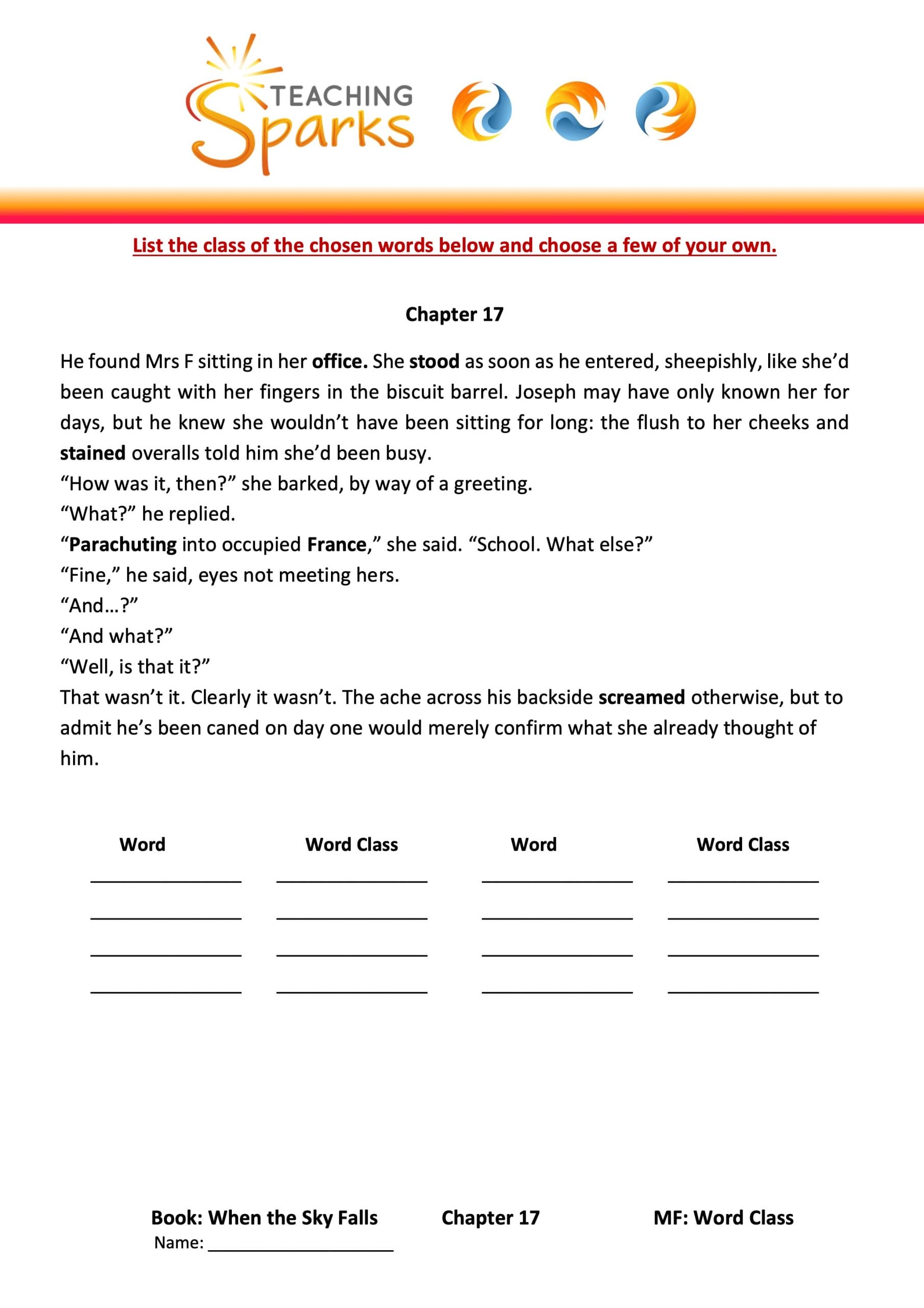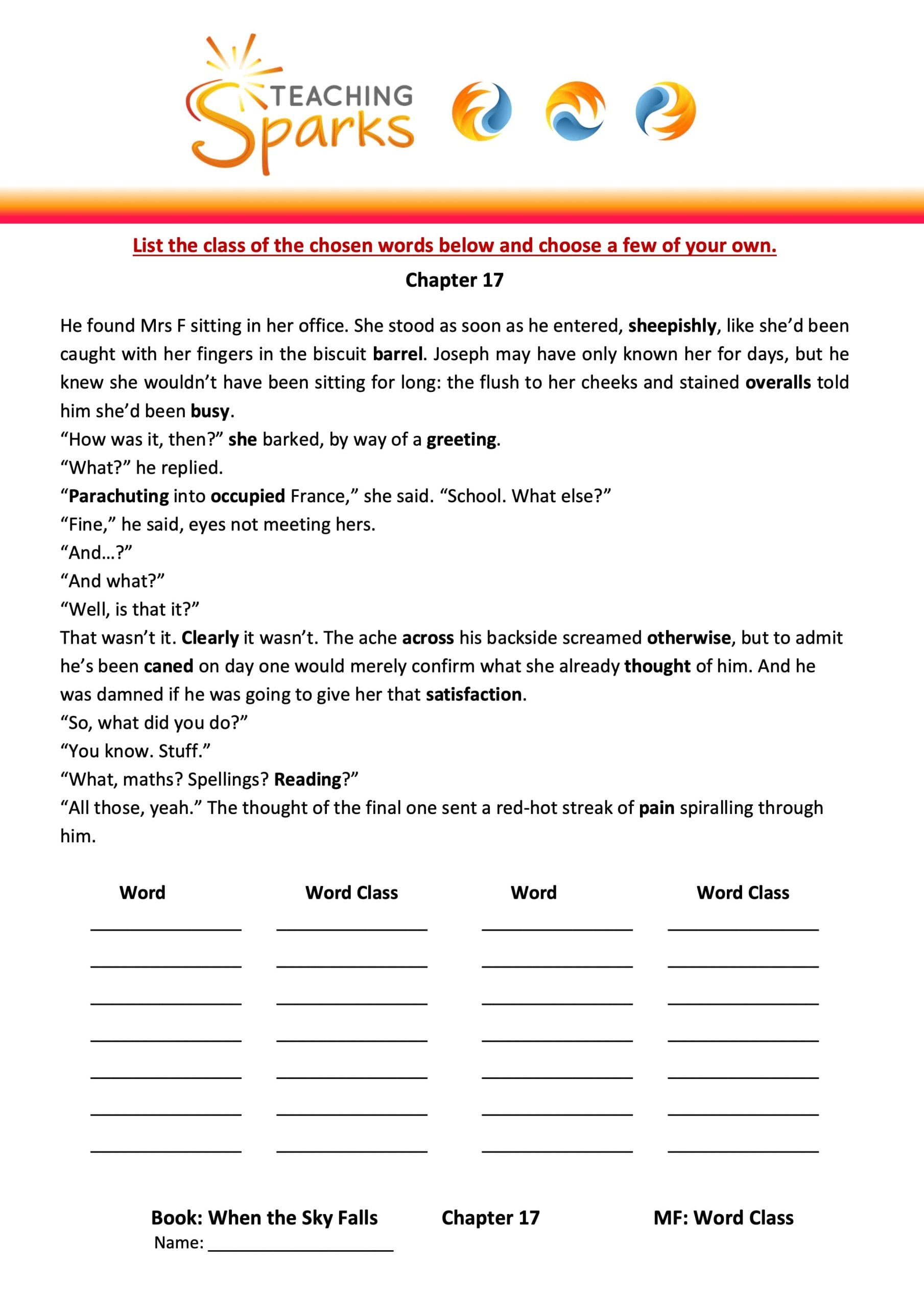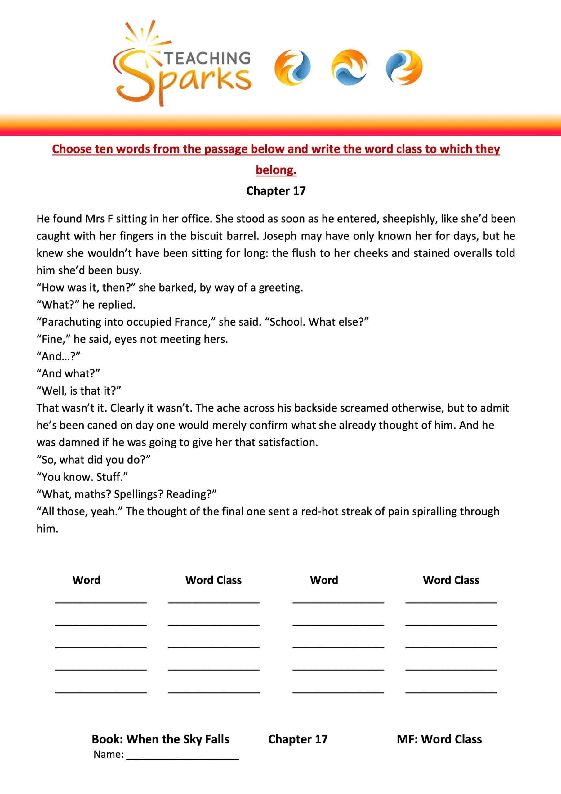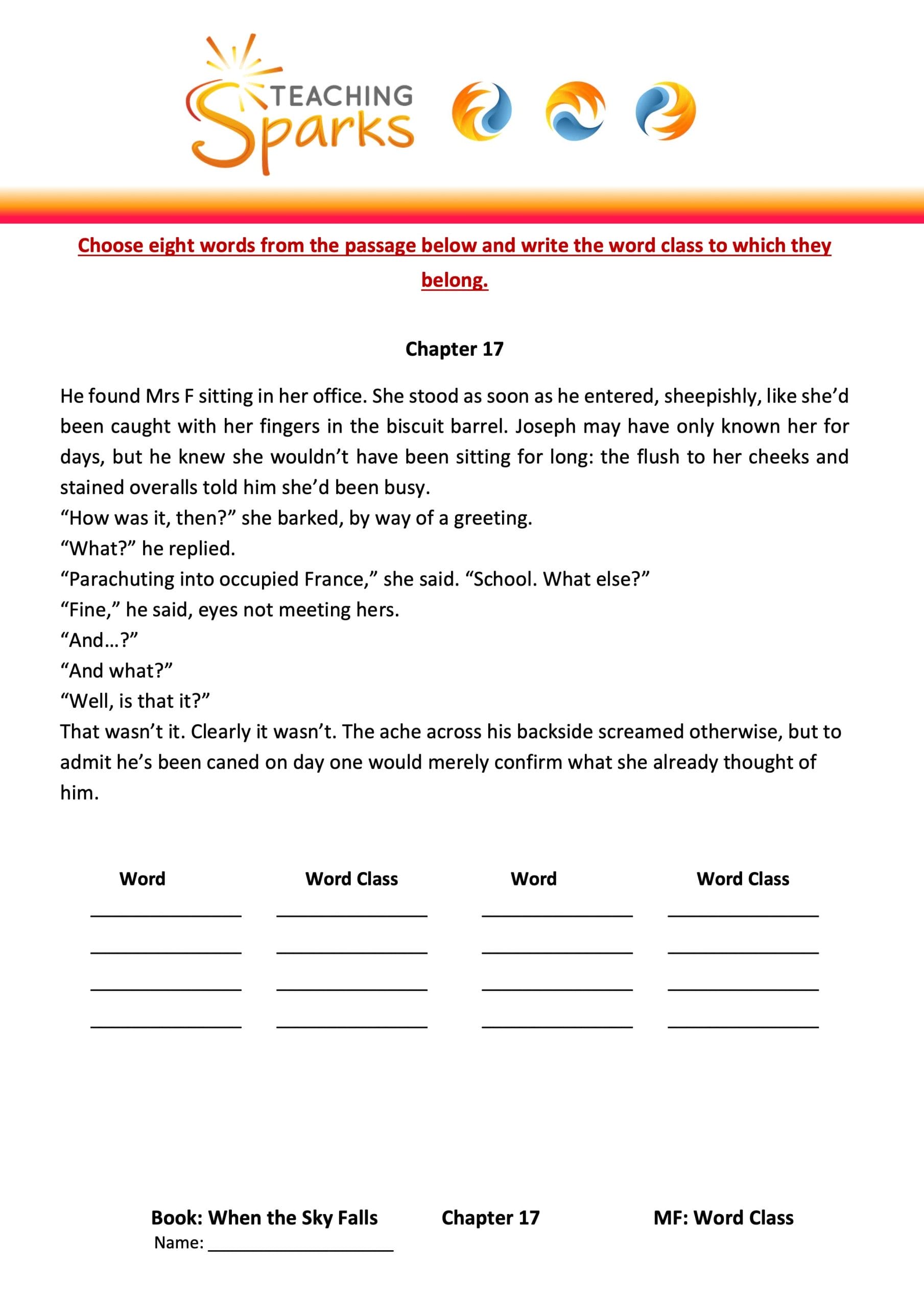 This teaching resource is linked to Chapter 18 of When the Sky Falls and focuses on contractions, developing editing and punctuation skills.