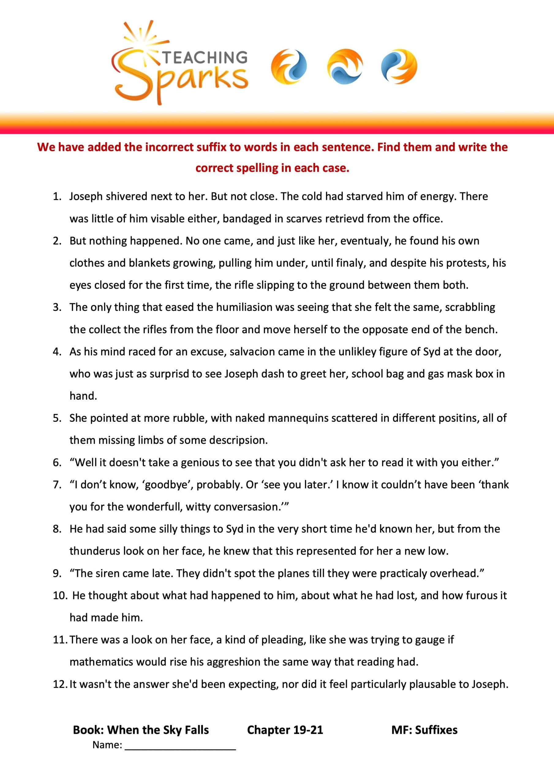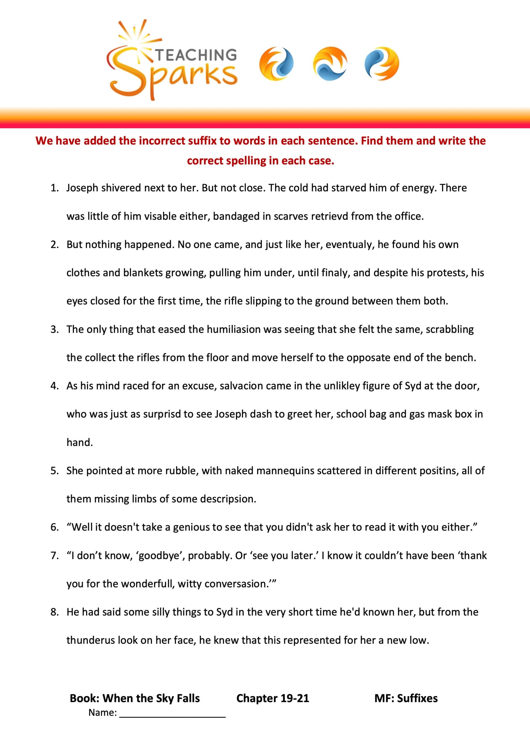 In this resource we have spelt a range of words incorrectly by modifying their suffixes.